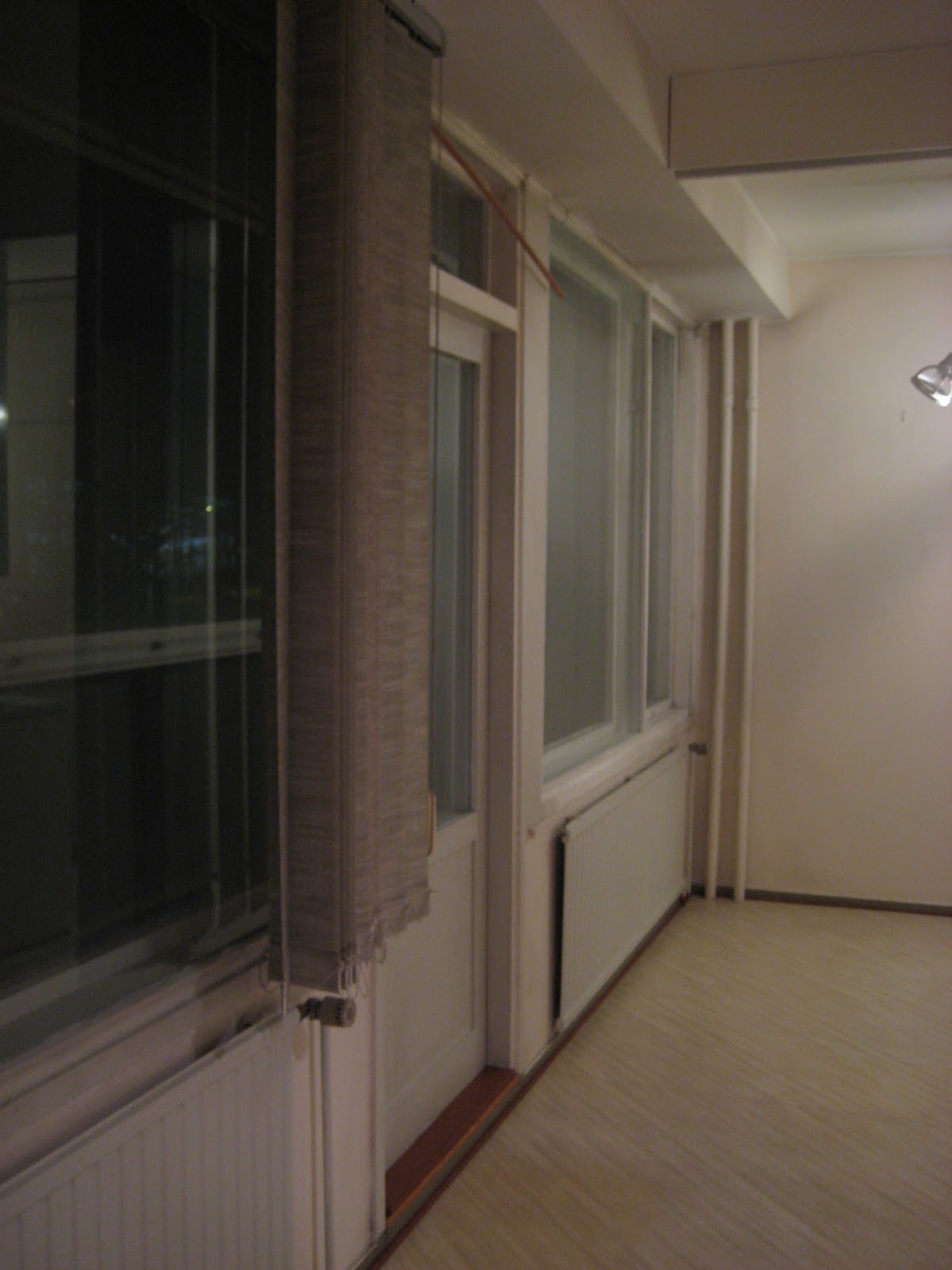 Näkymä eteisen ovelta parvekkeelle/olohuoneeseen