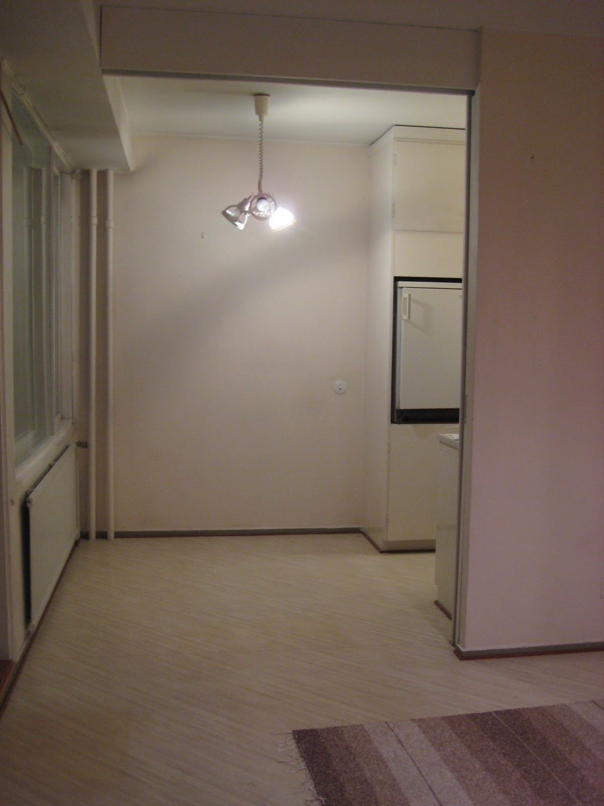 Olohuoneesta keittiöön, keittiö ton seinän takana (seinä puretaan)