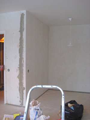 Jas seuraavaksi tosiaan seinät tasoitellaan jonka jälkeen pohjamaalataan ne. Alimmassa olevassa kuvassa oleva seinä tapetoidaan! Muuten kaikki muut seinät maalataan muistaakseni maalarinvalkoisella.